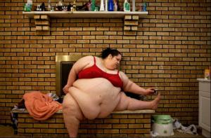 ↓当今世界最不可思议的肥婆美国新泽西州42岁女子唐娜·辛普森虽然体重已高达272公斤,但她却不顾一切地增肥,让自己的体重最终超过1000磅(453公斤),成为全世界最重的女人和全球第一个“半吨肥妈”。据悉,她每天要狂吃12000卡食物。