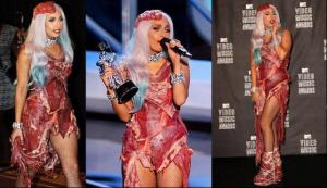 ↓当今世界穿衣最雷的“雷神”Lady Gaga是内衣外穿高手,演出造型的服饰多为内衣、泳衣式、蔬菜装、肉片装,夸张程度众所周知,所以她被誉为世界第一“雷神”。