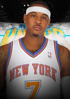 2011年2月21日,丹佛掘金队在当地媒体确认,安东尼正式被交易到纽约尼克斯队。2012至2013赛季,安东尼以场均28.7分,获得NBA常规赛得分王。这是纽约尼克斯队史上第2位得分王。