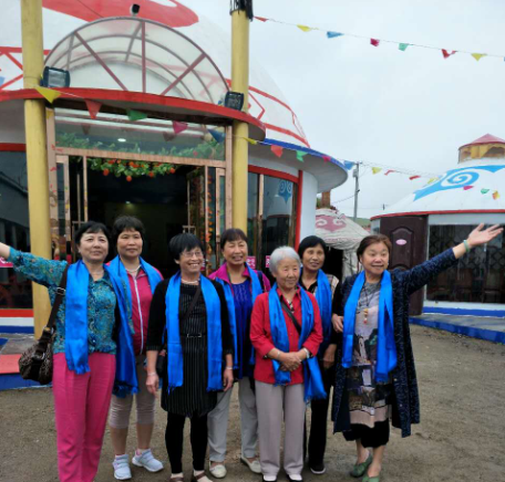2017年8月2日,周大荣携妻子吴昌祥、孙子周裕荃跟随615团无座炮连聚会的战友们游览内蒙古察哈尔右翼中旗辉腾锡勒草原黄花沟风景区。黄花沟景区平均海拔2000米以上,是典型的高山草原地形。在萨日娜民俗村,当地牧民用献哈达、敬下马酒等传统方式,载歌载舞欢迎远方的客人。战友们感受到了牧民的热情和家的温馨。在热烈的气氛中,品尝了具有浓厚草原风味的奶茶和奶食,以及美味的手扒肉、烤羊腿等美食。