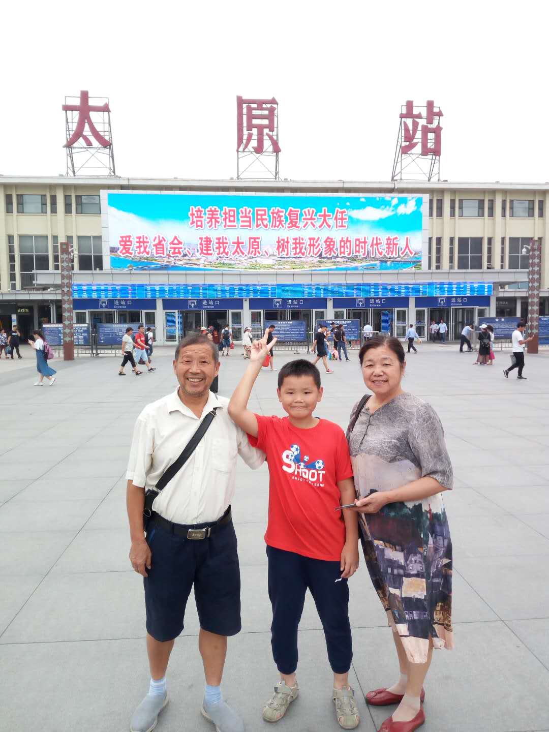 7月26日下午4点,周大荣携妻子吴昌祥和孙子周裕荃从平遥站乘坐火车前往山西省城太原市。在太原停留期间,主要游览了太原市西南25公里处的千年古刹、国家4A级旅游景区、国家重点文物保护单位晋祠,太原商业街柳巷等。